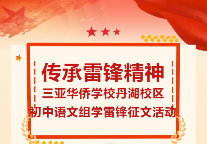 学习雷锋好榜样雷锋,一个熠熠生辉的名字,他的精神穿越时空,如同一盏明灯,照亮了无数人前行的道路。为大力弘扬雷锋精神,传承中华民族传统美德,激发广大同学的爱国情怀与社会责任感,三亚华侨学校初中语文组特举